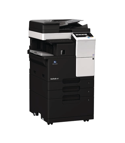 Attractive finishing flexibility with basic job separator, compact integrated staple finisher, and modular floor-type finisher that’s upgradeable with punching unit and/or saddle stitch and folding unit (optional). Great assistance and time savings for users